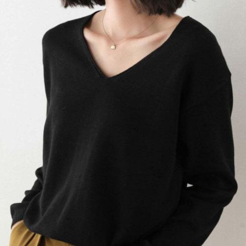 [오너클랜]인기상품 얇은 브이넥 니트 긴팔티셔츠 베이직 캐주얼룩 데일리 [W96252D_260408]