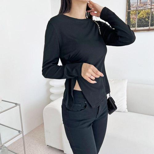 [오너클랜]인기상품 여자 옆트임 셔링 신축성 얇은 슬림핏 긴팔티 [WFK8F4C_260406]
