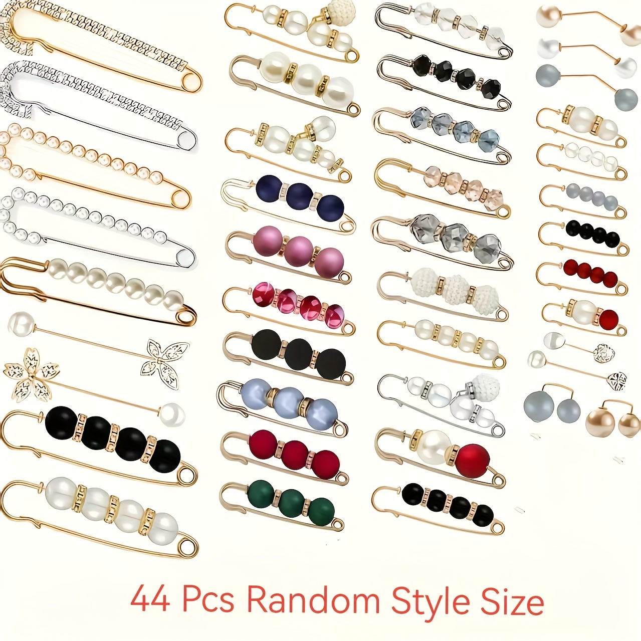 TEMU 28/44개 세트 (스타일 및 사이즈는 랜덤으로 혼합됨) 다양한 사이즈 조합. 여성용 고급 인조 진주 및 허리핀 세트 - 옷과 스커트를 고정하고 바지 허리 조절에 이상적인 다용도 사이즈