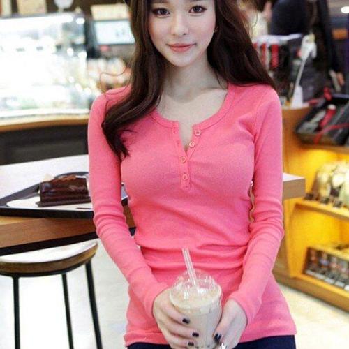 여자 봄맨투맨 브이넥 쫄티 티셔츠 골지 무지티 (3jWCW)