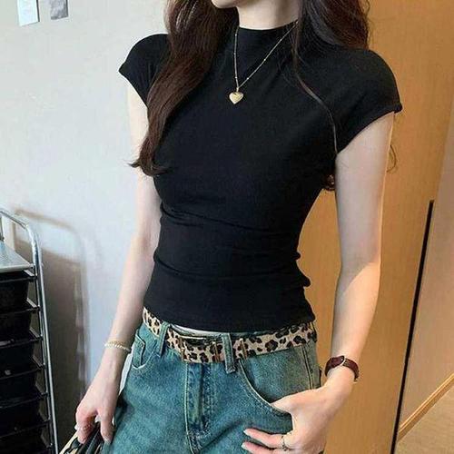 [셀러허브_여성트랜드패션]ONM 반팔 캡소매 무지 쫄 티셔츠 하프넥 여자 여름