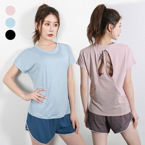TEMU 여성용 피트니스 댄스 운동 캐주얼 자카드 요가복, 야외 전문가용 러닝 루즈핏 스포츠 탑, 아웃라인 아름다운 등 여성용 화이트 루즈핏 아름다운 등 반팔 스포츠 셔츠 트레이닝 피트니스 티셔츠 여름