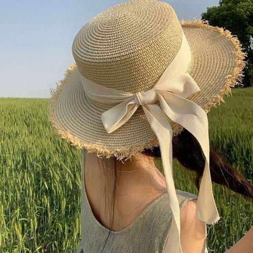 플랫 유럽풍 휴양지 여행 밀짚 해변 패션 리본 모자 WFIP0M8