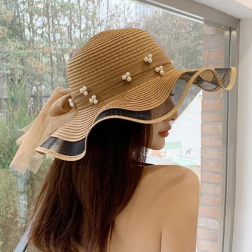 리본 브라운 비치모자 여성 휴양지 여행 해변 WFIGJIC