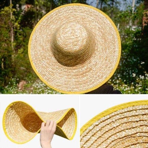 버킷 햇 레인보우 넓은 휴양지 여성 밀짚 모자 바캉스 해변 라탄