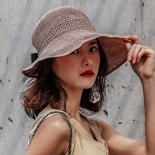 유유라키 여름 와이어 밀짚 라탄 버킷햇 모자