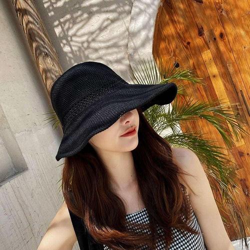 블랙 모자 버킷 비치 캠핑 햇 해변 여성 여름모자 밀짚모자 WFISAOG