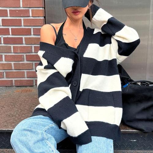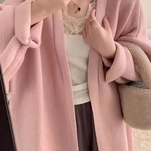 여자 겨울 심플 캐주얼 루즈핏 니트 롱가디건_3