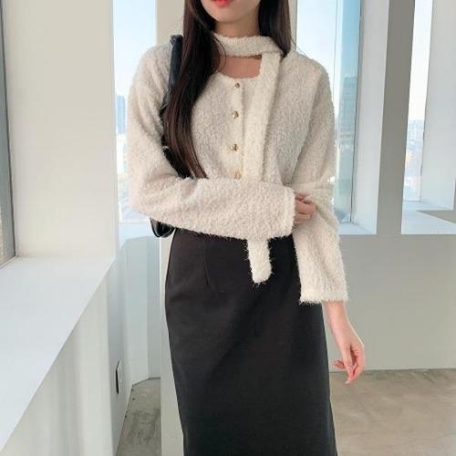 [다잇템]여자 속기모 라운드 가디건 겨울 롱스커트 세트