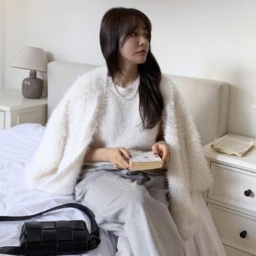 [다잇템]여자 봄 겨울 오버핏 아우터 보들 퍼 롱 가디건