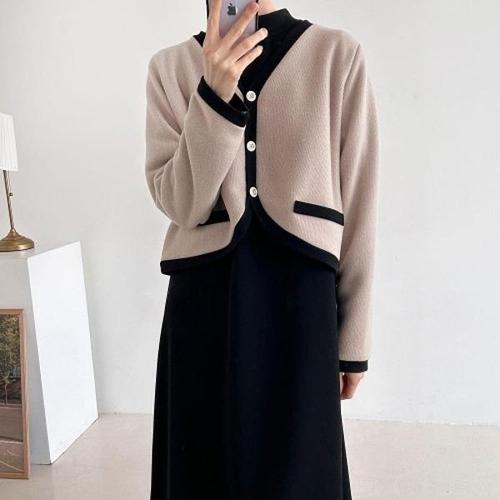 [다잇템][다잇템] 여자 카디건 롱원피스 콘트라스트 겨울연말원피스 하이넥 세트_19397985_588872