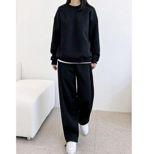 [에이치플러스몰]여자 맨투맨 와이드 팬츠 데일리 기모 트레이닝 세트