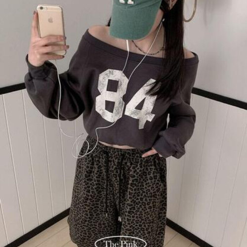더핑크 / 초프 루즈핏 프린팅 피치기모 원숄더 크롭 맨투맨