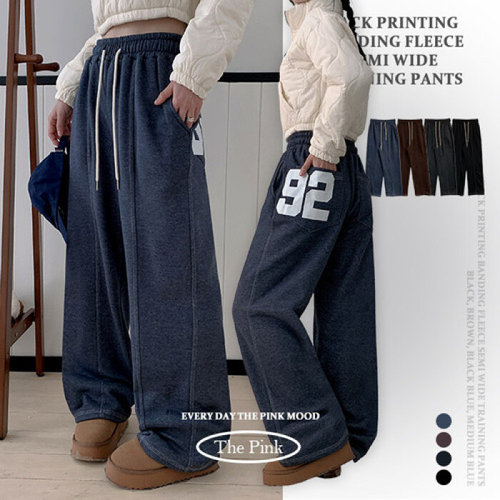 더핑크 / 카븐 백 프린팅 밴딩 기모 세미 와이드 트레이닝 팬츠
