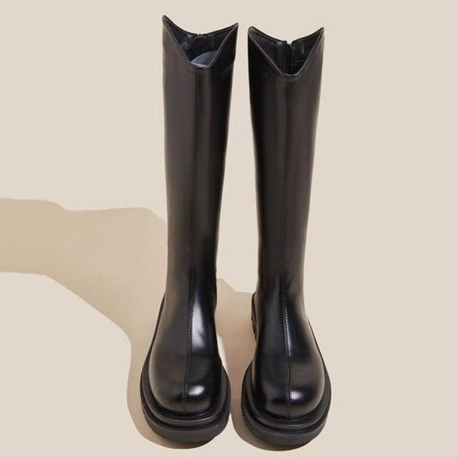 통굽부츠 천연소가죽 둥근코 가보시 통굽 옆지퍼 여성 롱부츠4fY