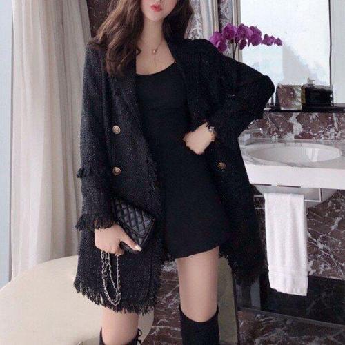 [미니멈]트위드 벨티드 롱자켓 (MXDAWJ9140 BK)_IC