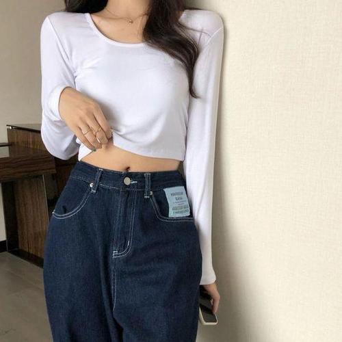 [셀러허브_여성트랜드패션]ONM 3컬러 베이직 캐주얼 크롭 U넥 무지티 긴팔티셔