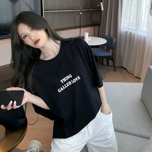 [엄지척]여성 바캉스룩 2컬러 기본 무지 오버핏 레터링반팔티_19557208_667501