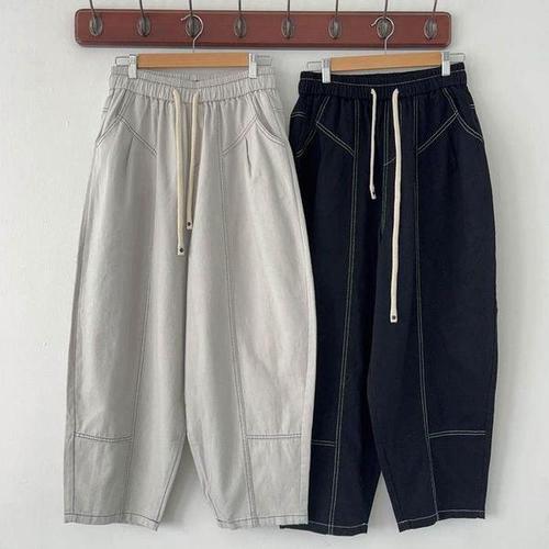 [다잇템][다잇템] 여성 자수 배기팬츠 넓은 끈밴딩 코튼바지_23027210_588872
