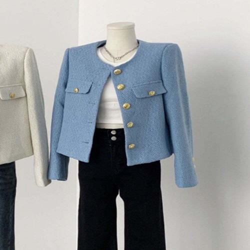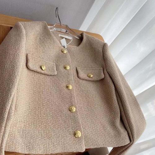CWAJ3353 금장버튼 트위드 자켓 베이직 봄자켓 하객룩 봄신상