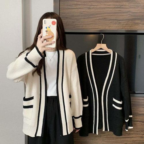 [셀럽하우스]여성봄자켓 SGGR0708 배색 간절기가디건 가을 크롭 간절기