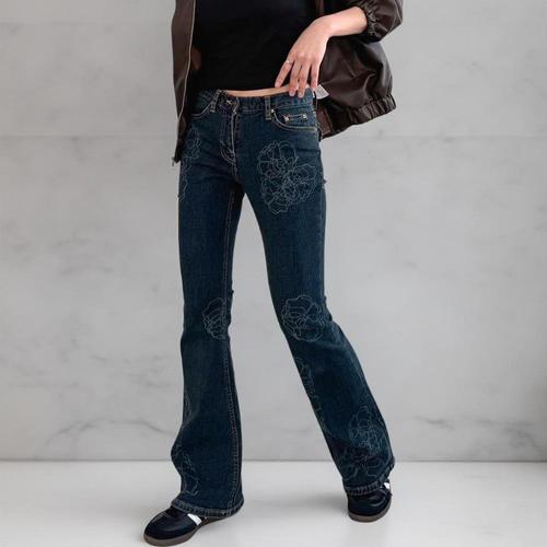 [옷자락] 여성 Y2K 꽃무늬 슬림핏 부츠컷 포켓 청바지
