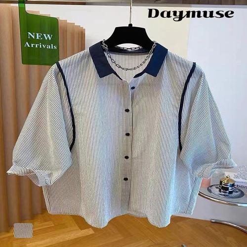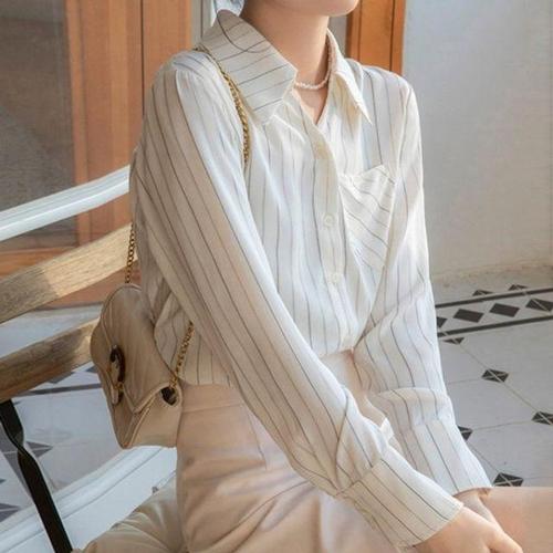 캐주얼 내추럴 줄무늬 카라 블라우스 스트라이프 셔츠 WFIY8JC