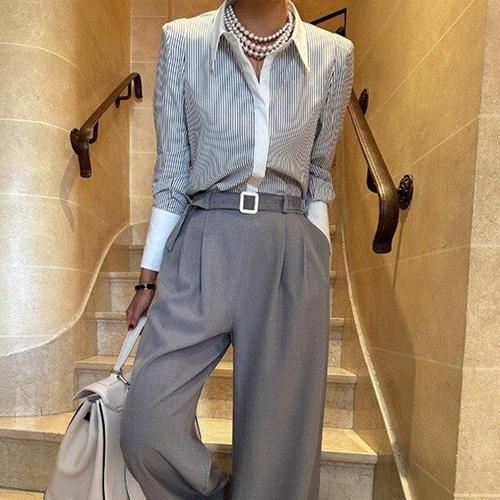 여성스트라이프셔츠 그레이시크