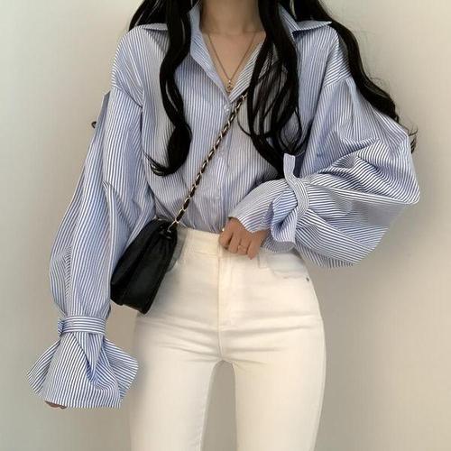 [에이치플러스몰]깔끔한 스트라이프 셔츠 오버핏 오피스룩 데일리