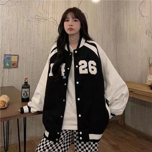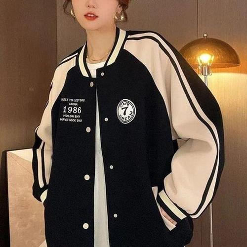 여성 오버핏 야구점퍼 가볍운 자수 외투 알파벳 (49K1b)