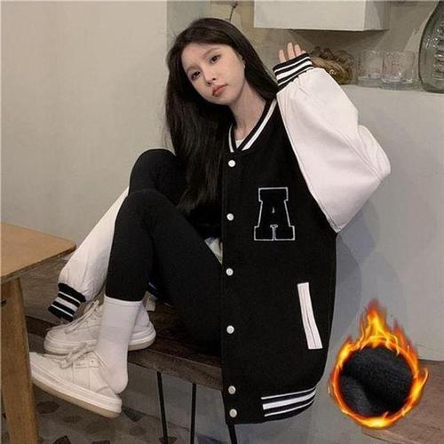 [셀러허브_여성트랜드패션]ONM 겨울스타일 야구 알파벳 오버핏 자켓 로고 기모