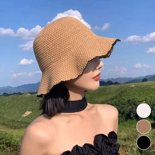 리보마 여성 니트모자 밀짚 버킷햇 턱끈 와이어