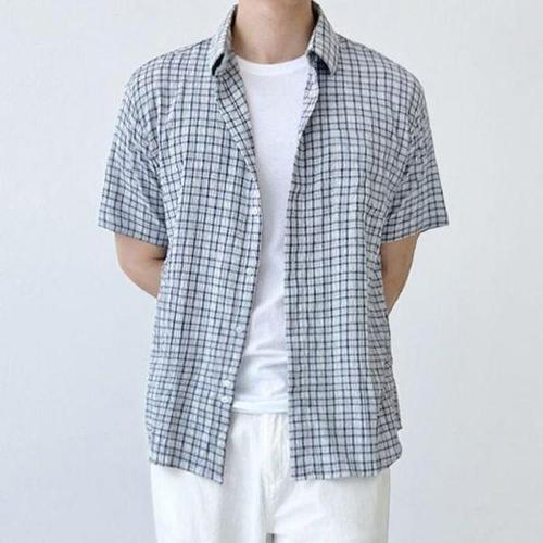 [하프클럽/코디제이]694 시어서커 체크 반팔남방 가볍고 시원한 여름셔츠 캐주얼 데일리 남