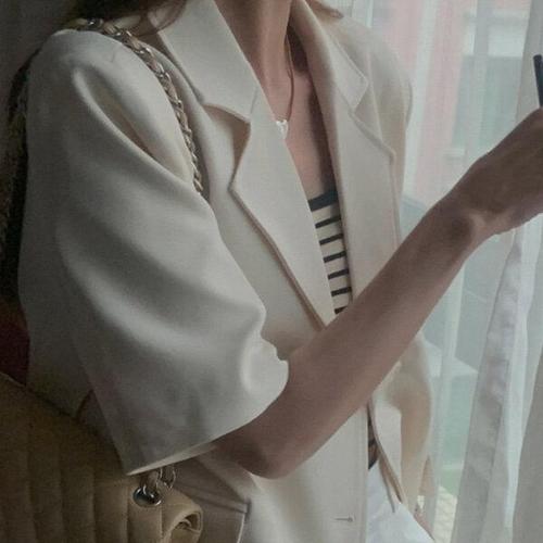별후이 여성용 여름 캐주얼 숏 루즈핏 반팔 정장 재킷