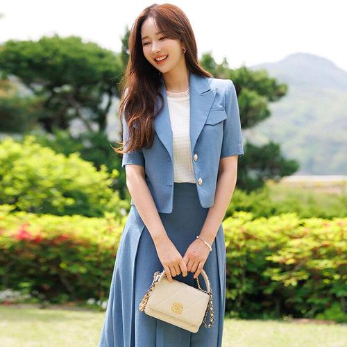 [라일리여성의류] Rly 린넨 자켓 여성 블 2버튼 반팔자켓 여름 캐주얼