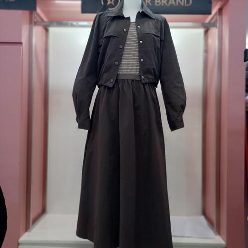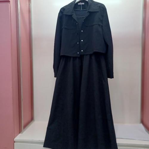 Latium HC06 스판 크롭 쟈켓 주머니 플레어 민소매원피스 세미정장샤드 세