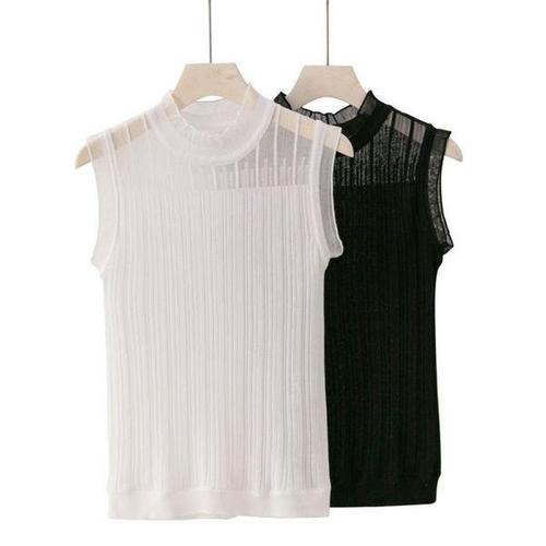 [셀러허브_여성트랜드패션]ONM 쥬디제이 하이넥 레이스나시 나시 끈나시티 정장나