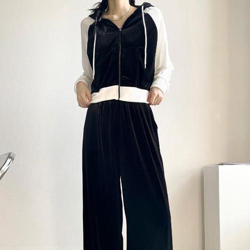 [에이치스타일](SET)엘라후드벨벳집업세트 겨울 여성 벨벳
