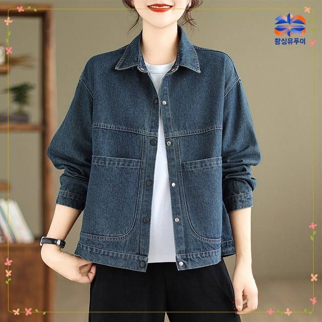 SUTA 빅사이즈 빈티지 여자 청자켓 데님 루즈핏 여성 자켓 간절기 오버핏 빅사이즈 빈티지