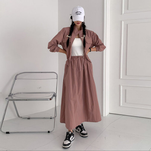 [오나스타일] 버블링 아노락 스커트 세트 바스락 트레이닝 SET