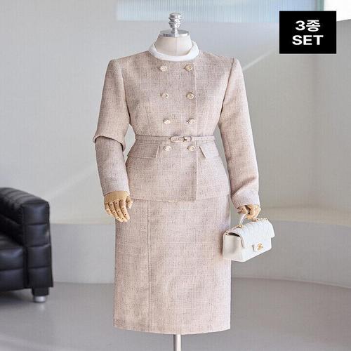 [커스텀에이블][55-77]골드버튼 트위드 자켓 스커트 벨트 3종세트_T2603SE008A