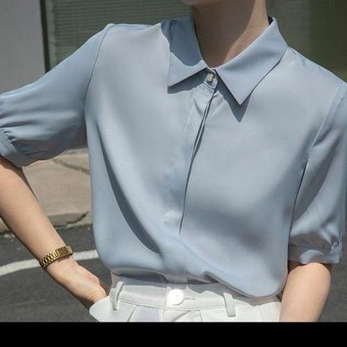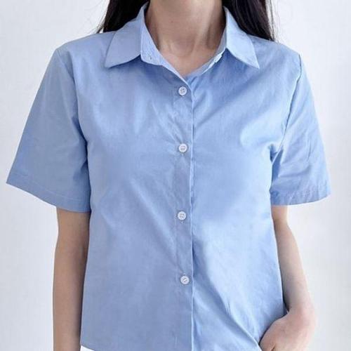 [에이치플러스몰]뒤주름라인 베이직 반팔 블라우스 카라셔츠 올데이