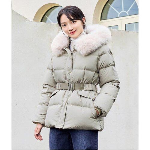 [최초가 499,000원][로안] 폭스 후드 벨티드 롱 다운