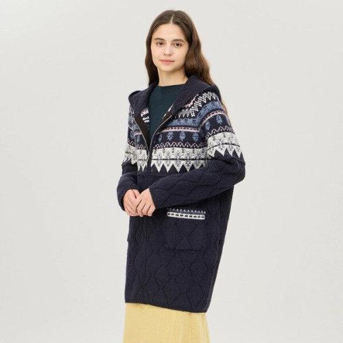 [베네통]패턴 후드 롱 니트 가디건_BAKC53461
