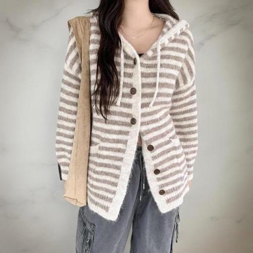 [다잇템][다잇템] 여성 캐쥬얼 후디 무드 롱슬리브 단가라 스웨터 빅사이즈 가디건_23740671_588872