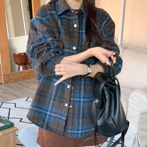 [다잇템]여자 양털안감 셔켓 힙커버 아방핏 격자 셔츠