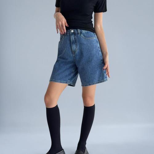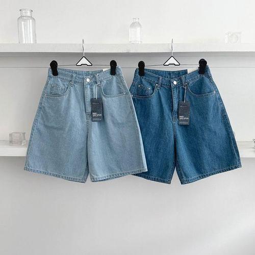 [옷자락]여성 여름 데님 와이드 4부 버뮤다 반바지 논스판