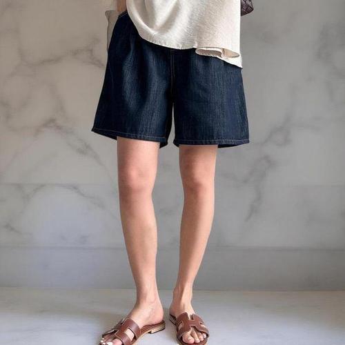 쏘옷 여성용 웬디 핀턱 데님 4부 반바지