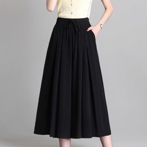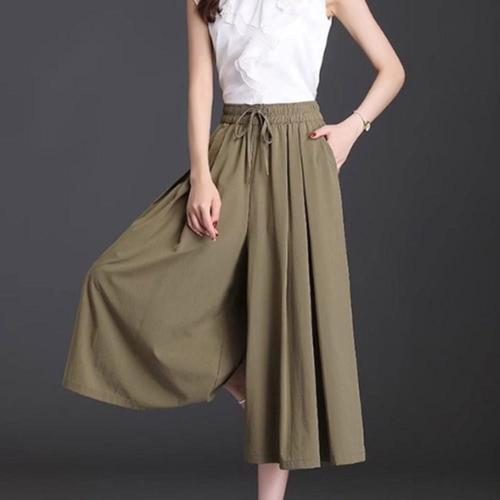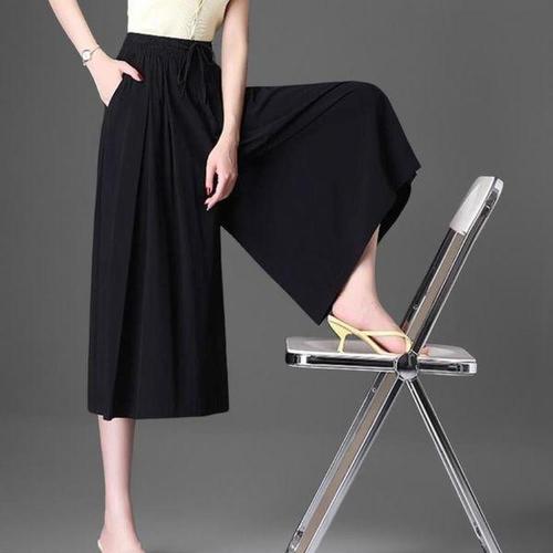 [신상오픈런]여성용 하이웨스트 카키 블랙 와이드 7부 팬츠 찰랑핏