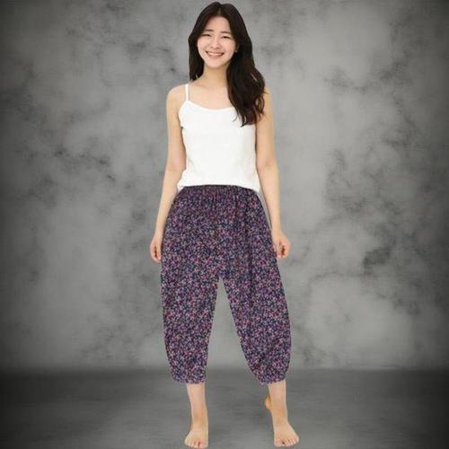 [신상오픈런]여성 꽃 패턴 항아리핏 7부 밴딩 파자마 바지